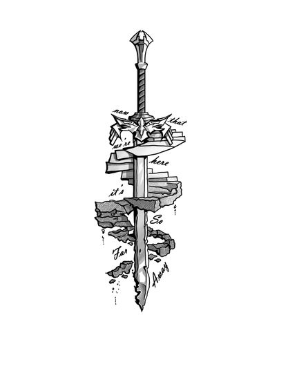 The song embodies going through the journey of escaping your personal struggles and making the worries you once had seem “so far away.” My representation is emerging from the bottom of the jagged abyss climbing your way out while the struggle represented by the sword cuts you the entire climb up. However, once you reach the top and have overcome the struggle, you grab the handle of the pain that once hurt you and wield the struggles as a tool to fight the next battle ahead.